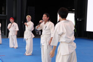 吉村洋文大阪府知事のビデオメッセージが上映されたのち、関西を拠点に活動するチャンネル登録者数260万人の人気5人組YouTuber「Lazy Lie Crazy」(レイクレ)が登場。空手有段者のメンバーが型を披露し、全員で板割りにもチャレンジするなど会場を盛り上げた。
