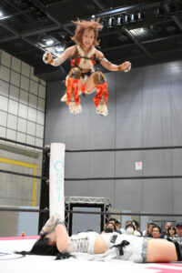 「うーん…技のミスが許せないのが一番で、スピードも速い方が良しとしているからですかね、走るスピードだけではなく、立ち上がりや相手に向き直るときの所作も含めてです。まだ自分の中では無駄な動きがあって、今一番無駄のない動きをしているのは(渡辺)未詩だと思いますよ。あの子だけは全然違いますよ、運動神経が良いだけでなく全部が揃っていますし、キープするために練習もしていますから。私は夏樹☆たいようさんに憧れていて、背の高さは気にせずとにかくがんばっているところを見せられればいいかなと。やられていても、お客さんが楽しんでくれているならいいと思っています。私の理想像にはなれないかもしれないけど、等身大でがんばっていれば何とかなるプロレスの奥深さというか。その“がんばる”の中に、練習が含まれていたという感じですね」