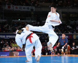 そんな大舞台にゼッケンナンバー1をつけて挑むのが岡田侑己(おかだ・ゆうき)選手。昨年7月には優勝賞金1000万円が懸かったプレミアムトーナメント「第1回空手Champion of Champions(KCC)」に挑み、国内・世界の猛者を退けて初代王者となった。180cm、90kgの体格に似つかわしくない華麗な回転蹴りや、軽やかなフットワークを持ち味としている。