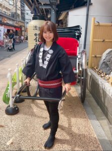 そこで人間力を上げるためにはどうすればいいか聞いてみたところ、『アナウンサーは人を楽しませるための職業だから、人を笑顔にするトークが身につくような仕事、たとえばディズニーリゾートのキャストや人力車みたいな…』と。人力車?女子はひけないでしょ?と思ったんですが、『人力車の俥夫は、一人で話を聞いて、一人で判断する。一人でお客様を楽しませる。だからテレビのように画面の向こうの何人もの相手を楽しませるためには、目の前の一人の心を動かさないといけない』と。それで人力車に興味を持って、どんな会社があるのかを調べ始めました」