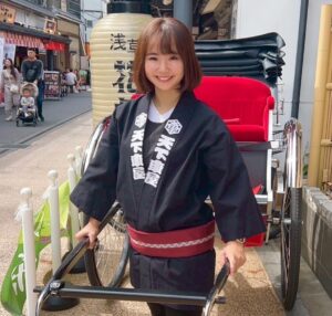 東京には人力車の会社が複数社あるのだが、関森ありささんが受けた一社目は不採用になってしまう。二社目に受けた浅草寺雷門前をベースにする「観光案内人力車 天下車屋」と縁があった。