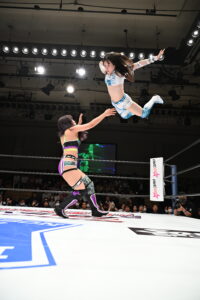 「小学校5年生の時に初めて、テレビでDRAGONGATEを見ました。当時周りに(プロレスを見ている人は)全然いなくて。印象に残っているのは、ドラゴン・キッドさんとEitaさんですね。最初はキッドさんの動きが凄くて空中殺法がきっかけで好きになったんですけど、だんだんEitaさんの“悪さ”に惹かれていってカッコいいなと思うようになりました。初めて行った会場も、DRAGONGATEのエディオンアリーナ第2でした。私が(エディオン第2で)試合をしたときは、「おお」となりました(笑)。その後、新日本も見るようになって、高校時代ですかね、スターダムも見るようになったのは。スターダムは最初、YouTubeにあるちょっと前の試合をよく見ていました。そのときに印象に残ったのが、AZMさんと吏南さんですね。女子のプロレスは、柔軟性が凄いと思いました。男子がダイナミックなら、女子はしなやかさがあって綺麗、という印象でした」