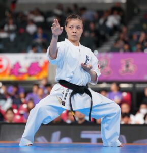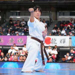 「負けてしまい悔しいですが、大舞台で自分の型をやり切れたので、出場してよかったと思っています。自分の試合の後も、亜翠佳先生が勝ち進んでいく姿を間近で見られたことにすごく感動して、自分も先生に追いつけるくらい上手くなりたいと思いました。今後は型も組手も両方がんばって、大会で優勝できるようにがんばります」(山中選手)