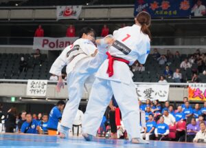 植松選手は新極真会群馬支部で研鑽を積む現役女子高生。今年7月に開催された年代別全国大会・カラテドリームフェスティバルでは初優勝を飾った有望株だ。今大会では惜しくも一回戦で敗退したが、かけがえのない経験を大舞台で積んだ。