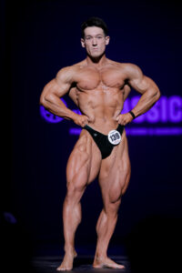 また、バスキュラリティ(血管が浮き出ている状態)も極めて鮮明で、特に大胸筋上部から三角筋・上腕にかけてのうねるような太い血管は、彼の重厚感溢れる肉体にぴったりマッチしています。ジュラシックカップでは、毎年インプルーブした姿を披露しており、今後も彼の進化が止まることはないでしょう。