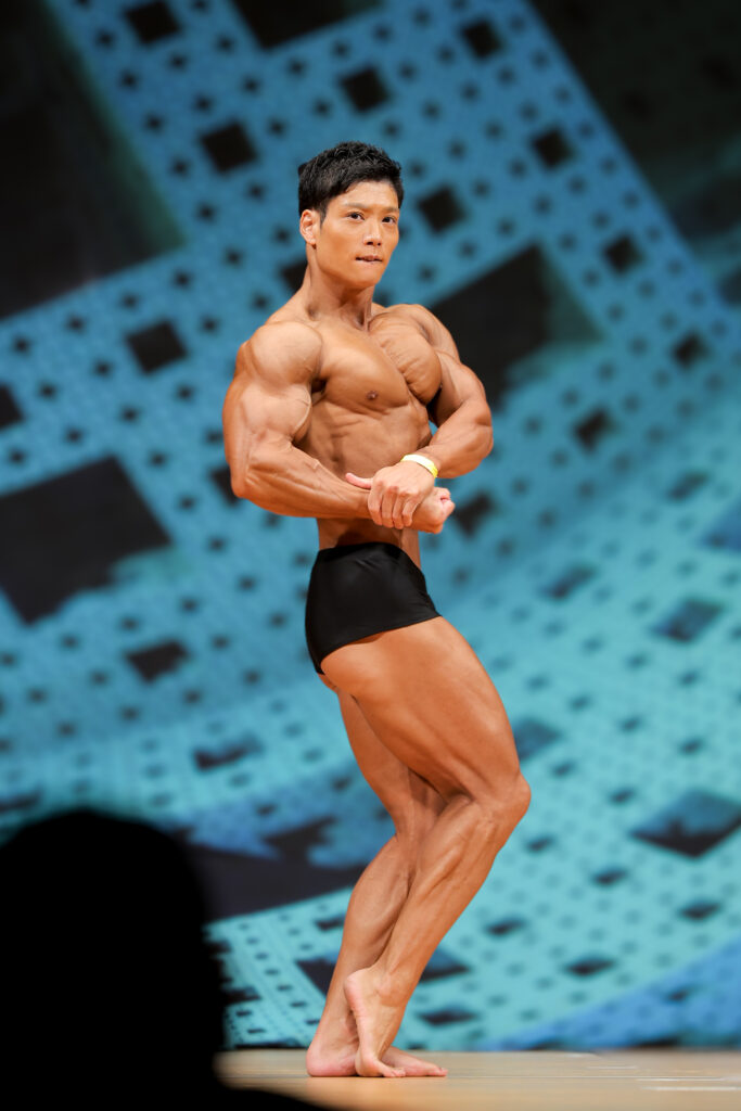 彼の特徴は、ボリューム感に溢れた上半身です。肩、腕、胸を中心に丸々とした筋肉を搭載しており、フロント・サイドポーズの迫力は圧巻です。三角筋のサイド、大胸筋中部上部の発達が素晴らしく、鎖骨や上腕骨の長さも収まりが良いため、より丸みの強い上半身が完成しています。また、三角筋は筋腹が長く、上腕とのセパレーションも明瞭なことから、ラットスプレッドやサイドチェストでのインパクトは抜群です。昨年の日本クラシックボディビルのオーバーオール戦では、井上貴文選手に敗れて惜しくも2位でしたが、現地で見ていた筆者は3位以降の選手を突き放すかのような強烈な印象を受けました。