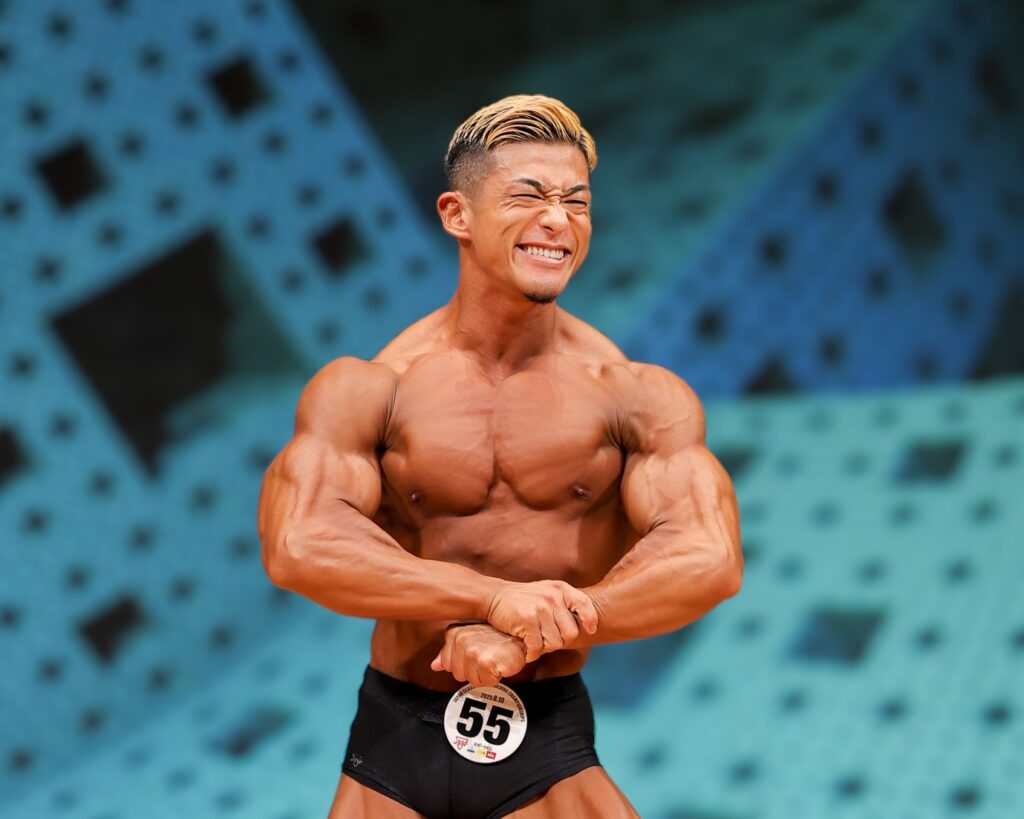 そんな彼の特徴は、優れたプロポーションと高いポージング技術です。前述したように、持田選手はあらゆるカテゴリーで成績を残せる万能な肉体をしており、特に長い手足を活かしたフロント・バックポーズの見栄えは抜群です。バルクに富んだ選手ではありませんが、卓越したマッスルコントロールとポージングによってアウトラインの膨らみや下半身の隙間を限界まで埋めており、彼の競技力の高さには驚かされます。