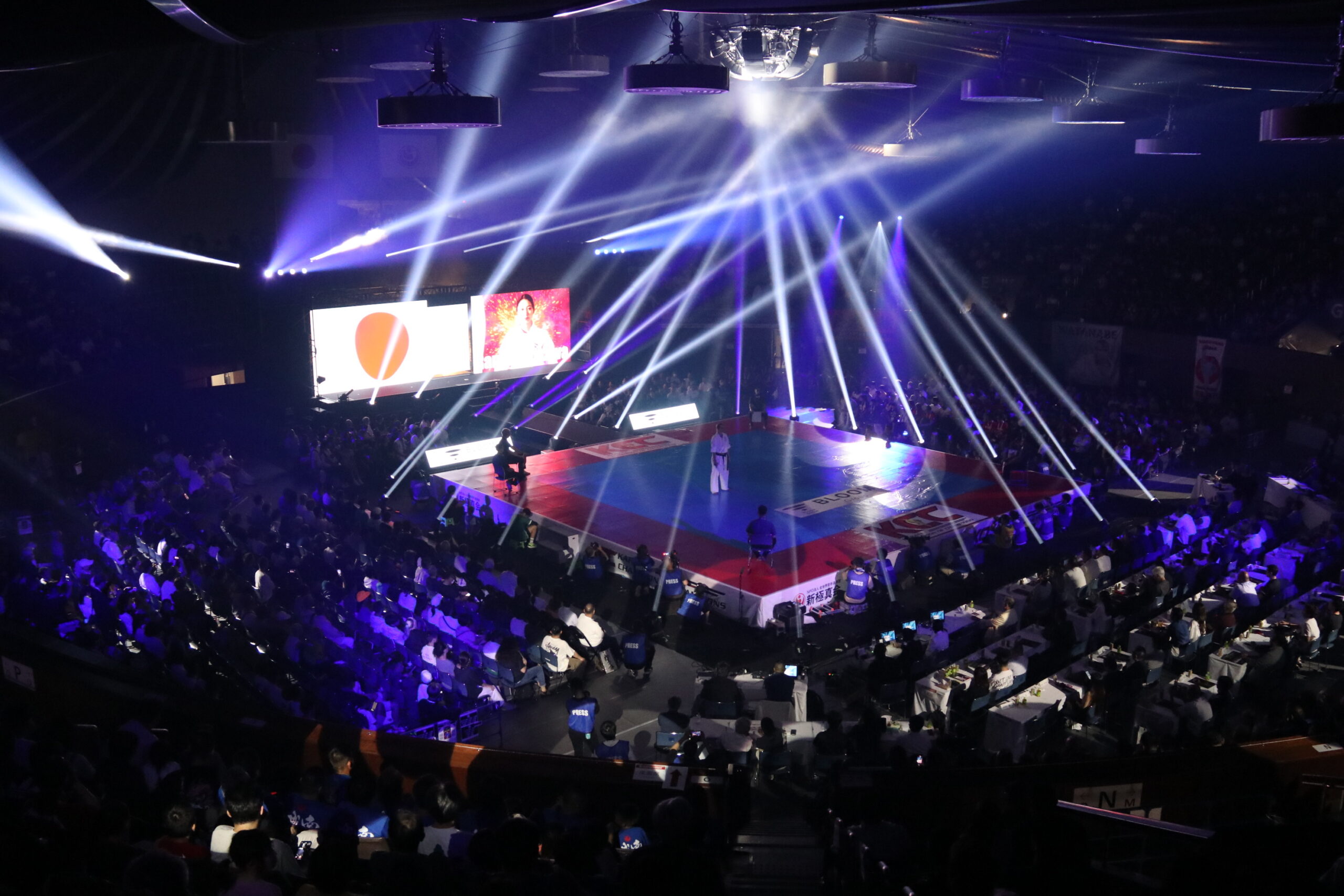 レーザー光線やスモークによる演出、選手ごとに用意された入場曲――。まるでプロ格闘技イベントのような華やかな舞台で、ハイレベルな攻防が展開される。夜開催という点も含め、空手の新たな魅力を体感できる大会となっている。