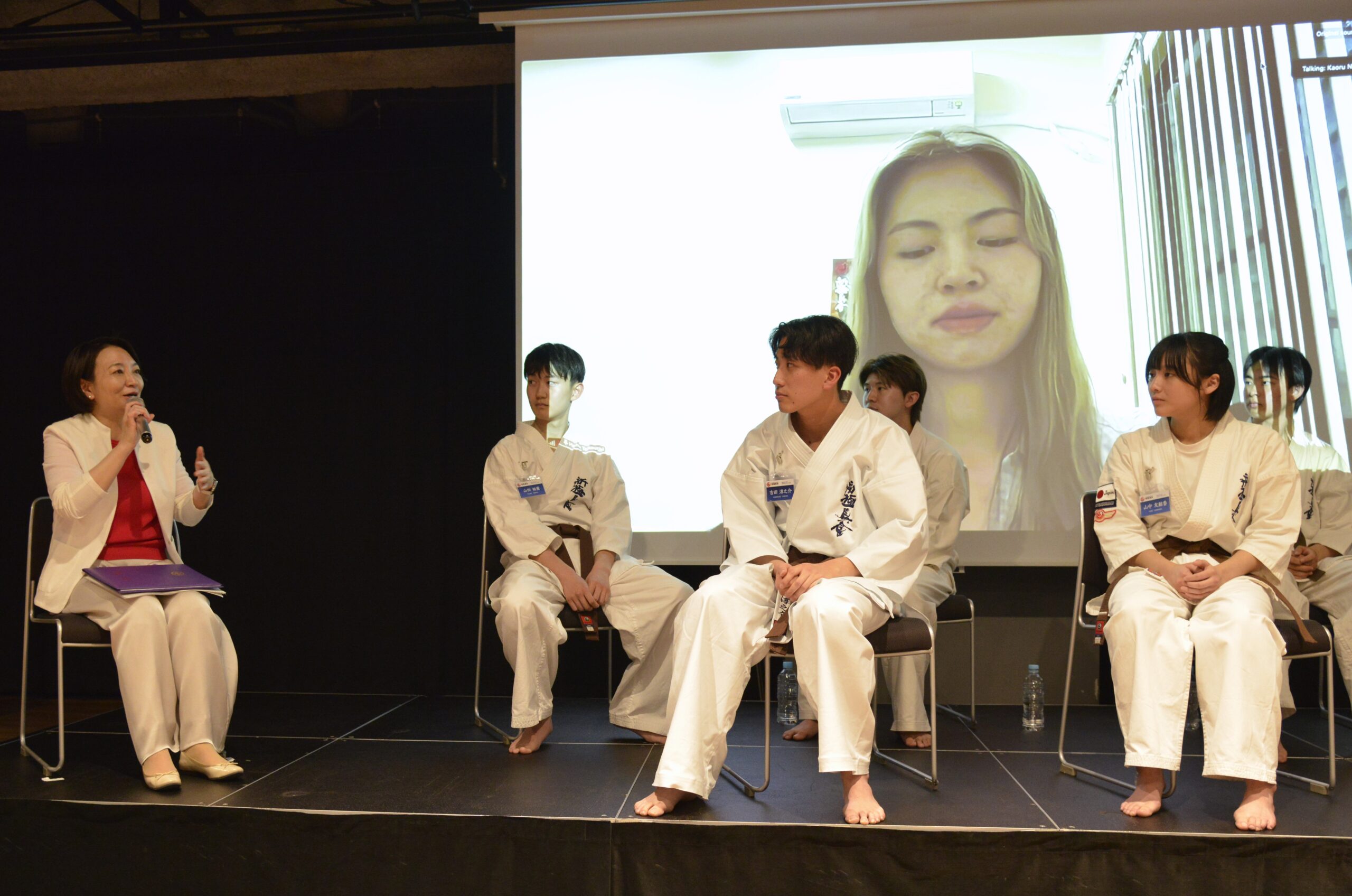 品川と麻布十番に道場を構える新極真会東京ベイ港支部は、「社会貢献」「青少年育成」「国際交流」3本柱を軸に15年以上にわたり港区で空手の普及活動を続けてきた。今回登壇したユース勢は、道場立ち上げ初期に入門した幼少年が成長した姿だ。村上、野口、鈴木、大沢は全国大会で優勝経験があり、山中は型と組手の二刀流で活躍しながら女子空手家ユニット「KARATEガールズ」でも注目を集める。中には夢を抱いて世界へと羽ばたこうとする者も多い。大都会で武道のエッセンスを吸収した若き才能が、自身の過去・現在・未来をどう結びつけていくのか。それを模索するのが、このシンポジウムの一つのテーマでもあった。