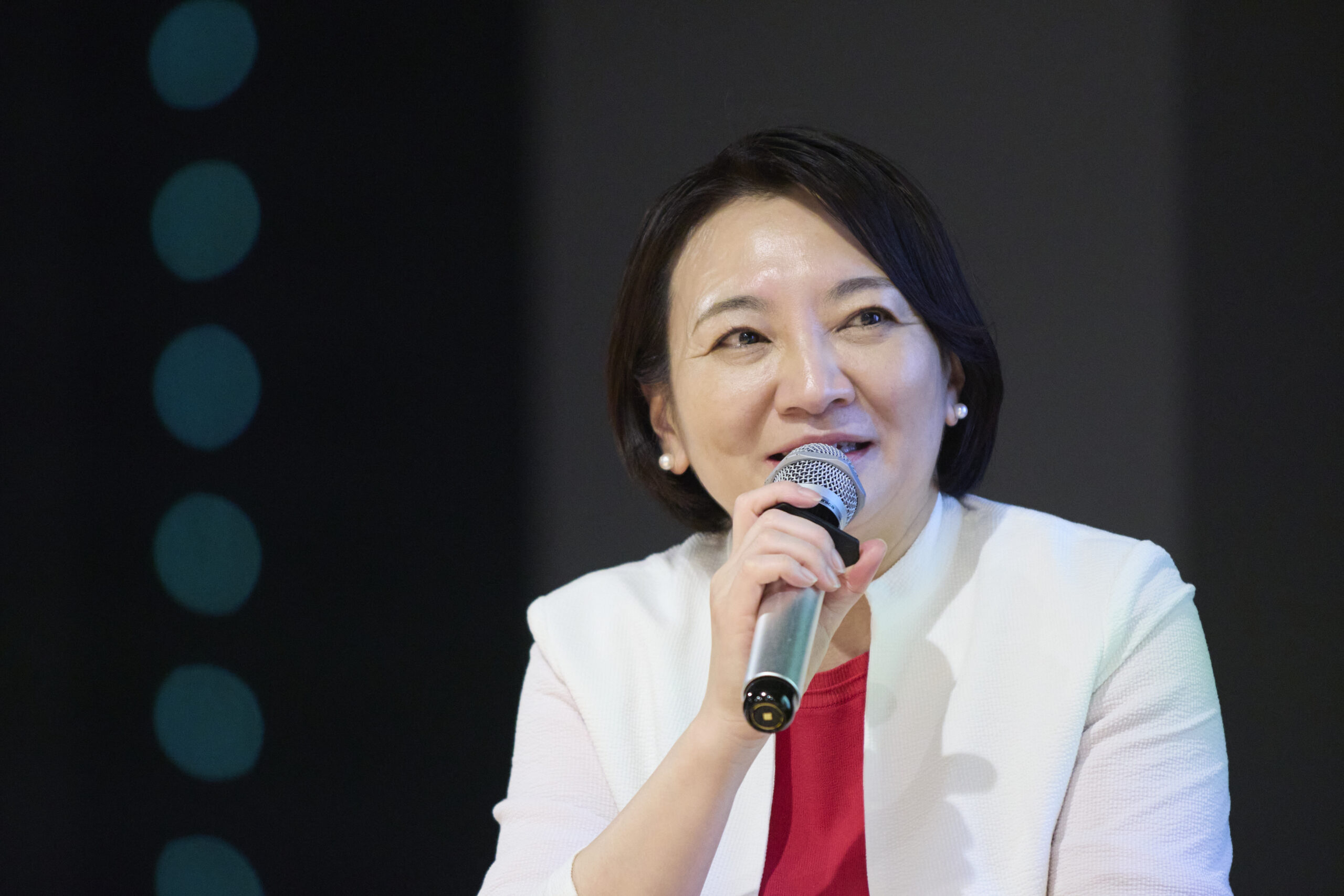 続いて特別ゲストである清家愛・港区長が登壇。参加者と同年代の娘を持ち、「世界一幸せな子育て・教育都市」の実現を掲げる区長は、「これからの未来をつくっていく皆さんが政治に関与してもらうのが大事。街をこうしてほしい、こう変えたほうがいいという声をどんどん上げてもらいたい」と投げかける。ユースたちはそれにうなづき、吉田が「今、幼年クラスの指導補助をさせていただいています。自分が教わったことを子どもたちに教えていくという関わり方も港区に還元する方法なのかなと思っています」と語ると、区長は「愛は循環していくもの。港区からそういうものが広がっていくといいと思います」と同調した。