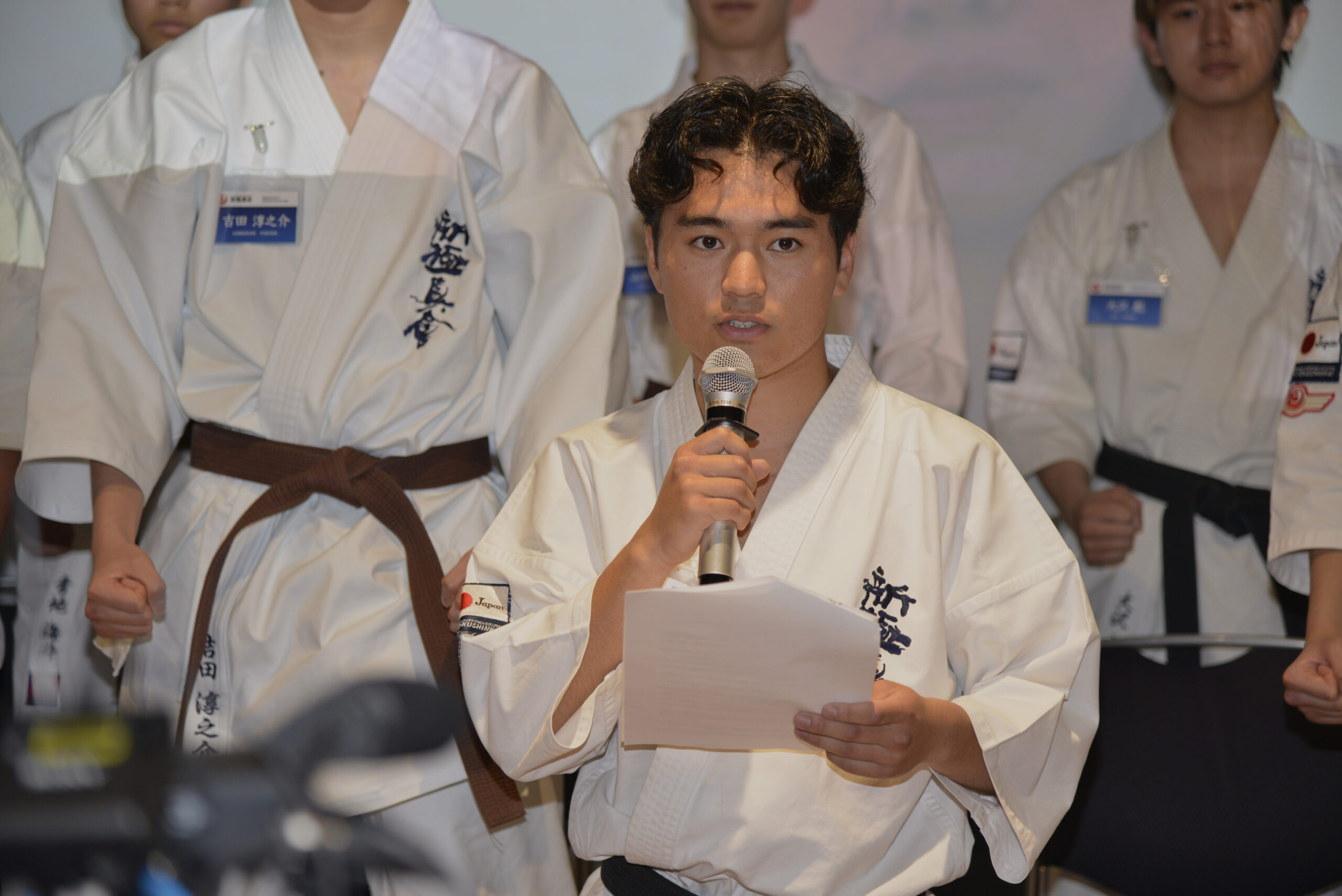 「海外に行くのも国際交流というベース、地域の方と関わっていくのも社会貢献というベース、次世代の子たちに空手を教えていくのも青少年育成というベースがある。僕たちはそれを教わってきました。そういう原点に返り、空手で培ってきたものを活かし、強いからこそやさしくするという小さなことからでも始めていきたい」という野口の言葉に対し、区長は「かっこいいお話をありがとうございます。自分を鍛え、強くやさしくあり、未来に対しても希望に輝いている皆さんは、これからの子どもたちにとってお手本、憧れの存在になると思います。私たちにとっても希望です」と拍手を送った。