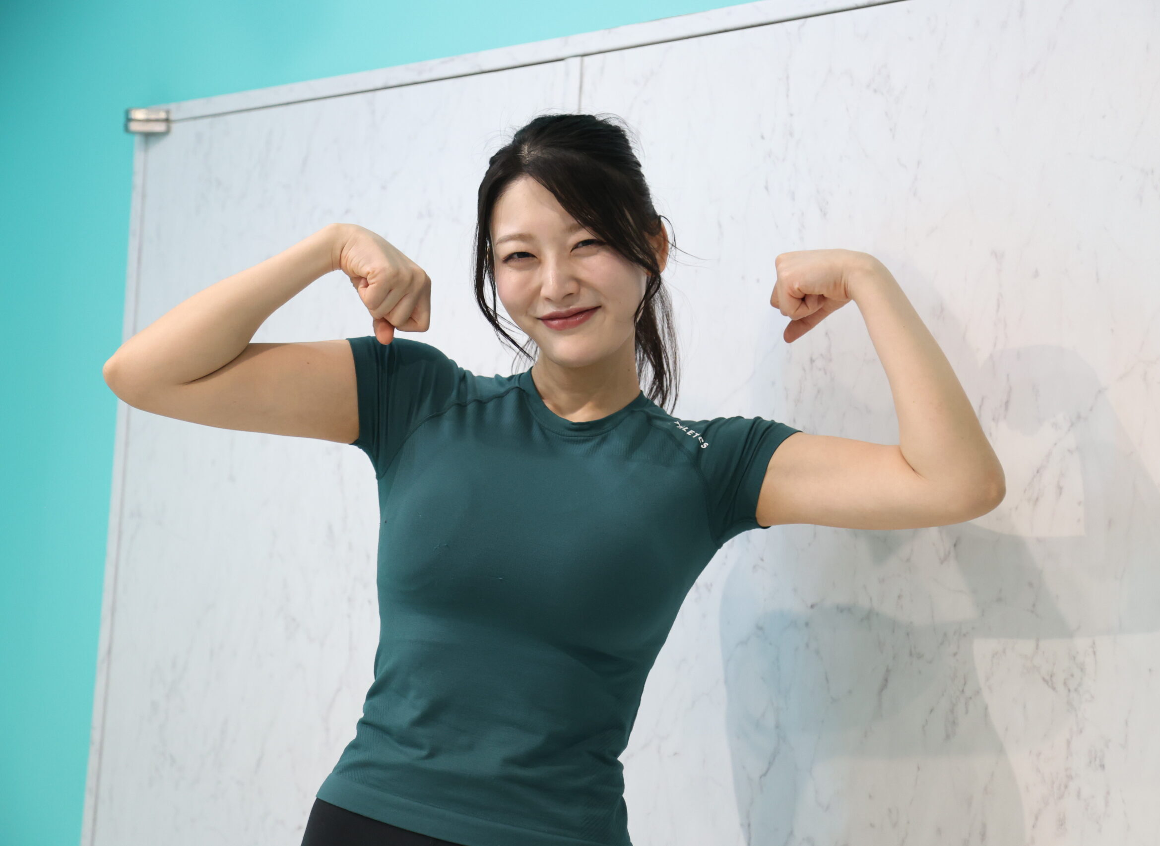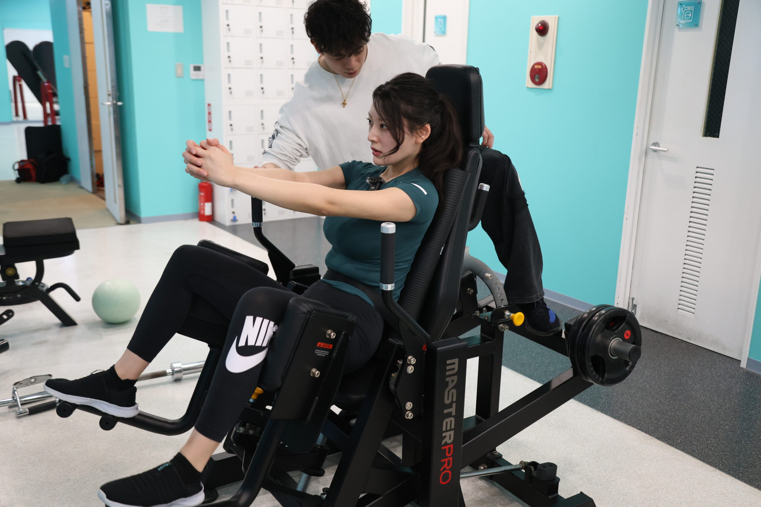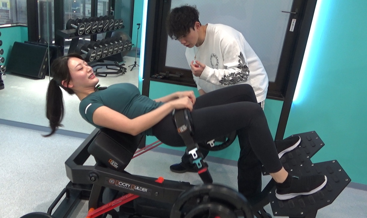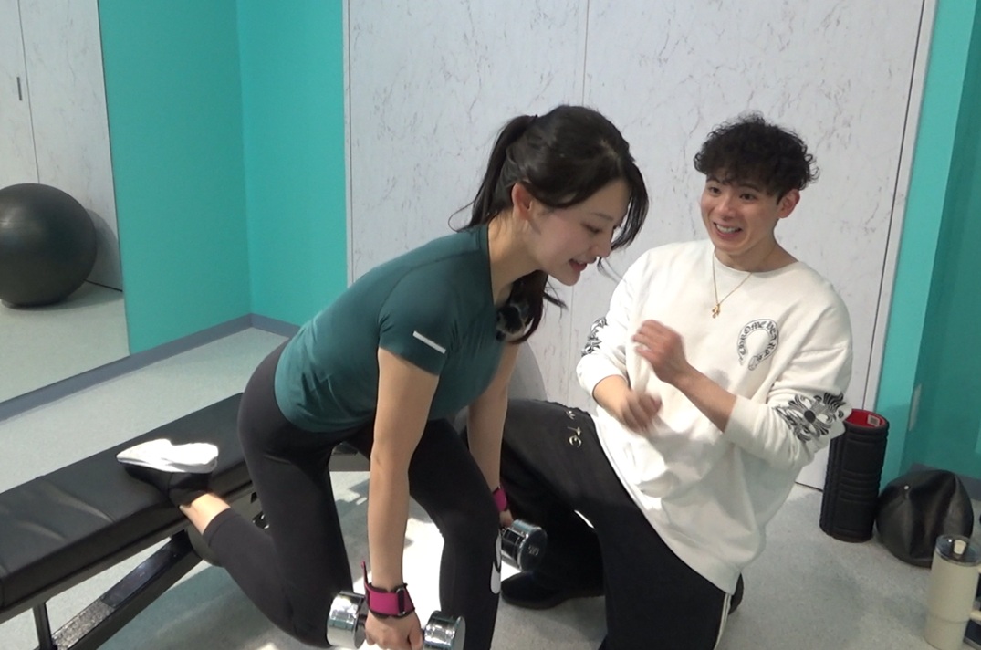 重量は片手6kgに設定してフォームを確認。着実な成長に染谷トレーナーも「素晴らしい」と評価する。そこから複数セットを実施して追い込み、お尻の筋肉がパンパンな中でラスト1セット(15回)も完遂。この日のトレーニングを終えた。